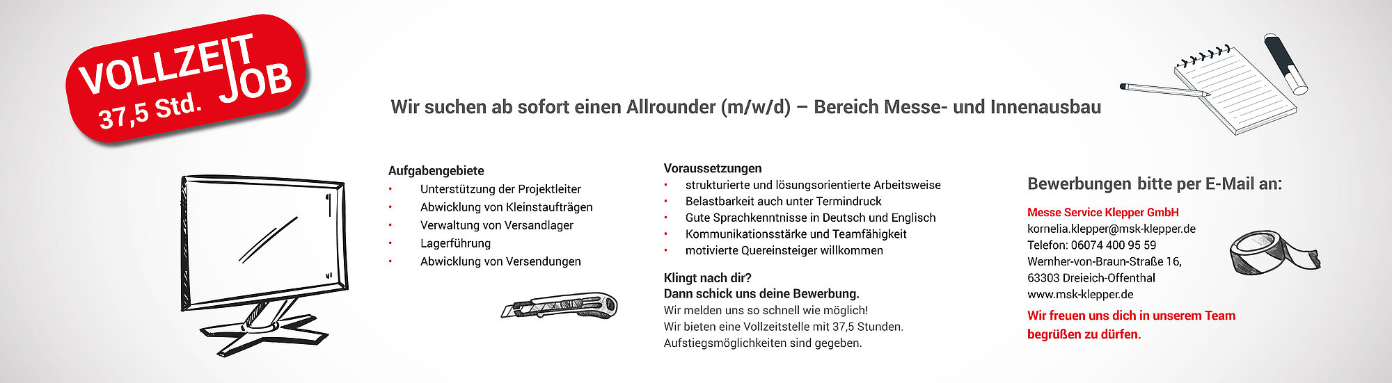 Bewerbung an: kornelia.klepper@remove.this.msk-klepper.de , Tel. 06074 400 95 59